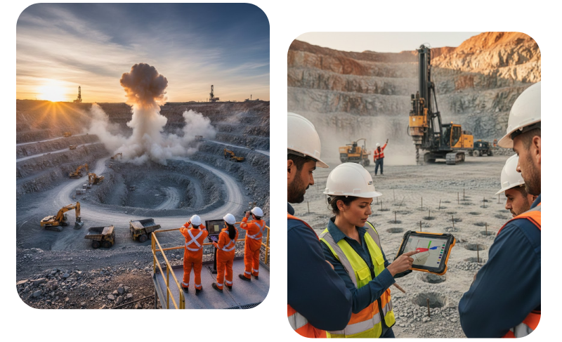 We deliver end-to-end mining blasting solutions designed for maximum rock fragmentation, operational efficiency, and site safety. From blast design and drilling patterns to controlled execution, our team ensures precision-driven results that reduce downtime, optimize output, and support large-scale open-cast and underground mining operations.